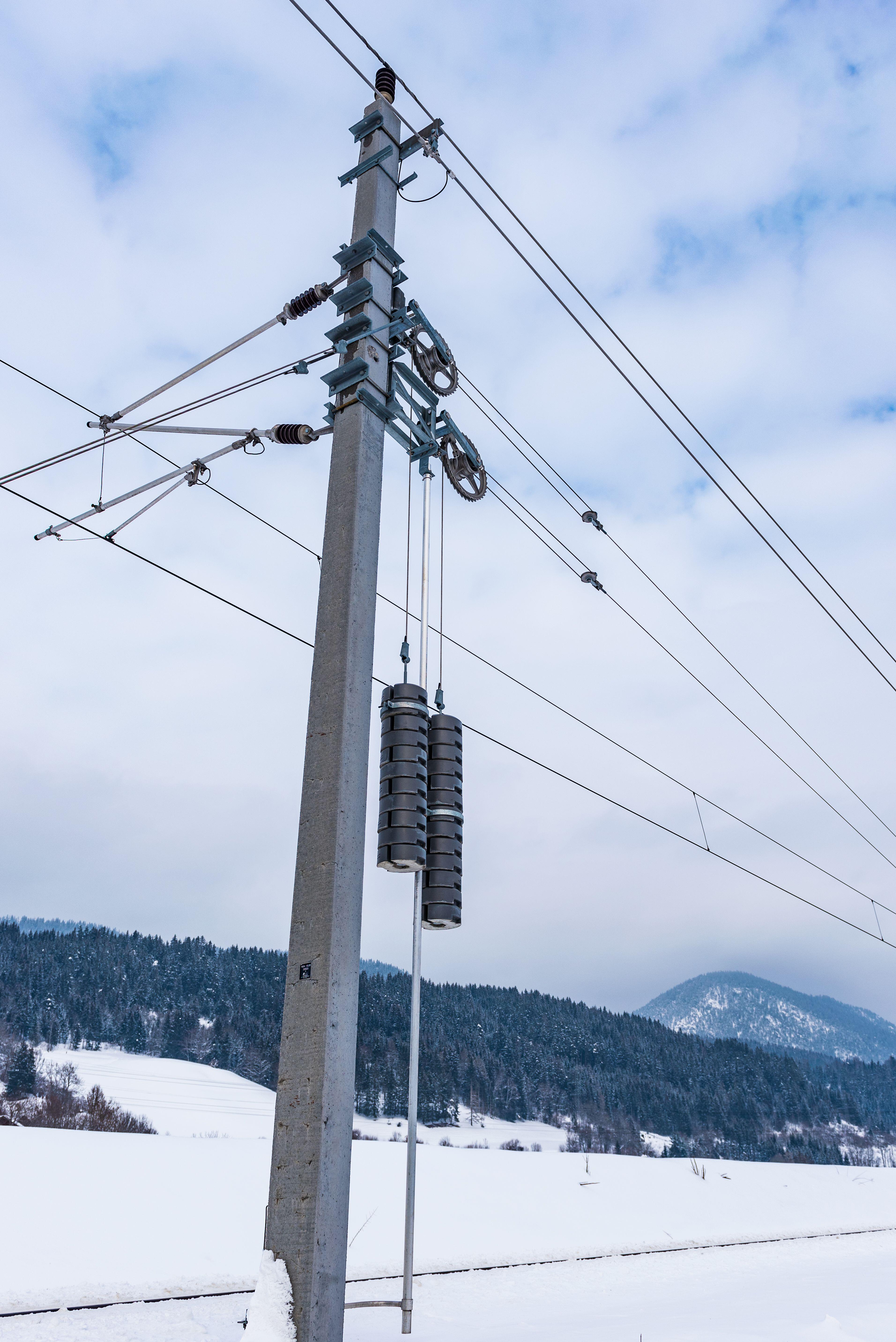 HS2’s overhead powerlines will be tensioned up to 10 kiloNewton metres tighter than on the conventional railway. Whatever the weather self-regulating counterweights positioned every 1200m along the line keep the wire at optimum tension, enabling a train’s pantograph (the arm that reaches up from the train to draw power) to maintain contact at speeds of over 200mph.