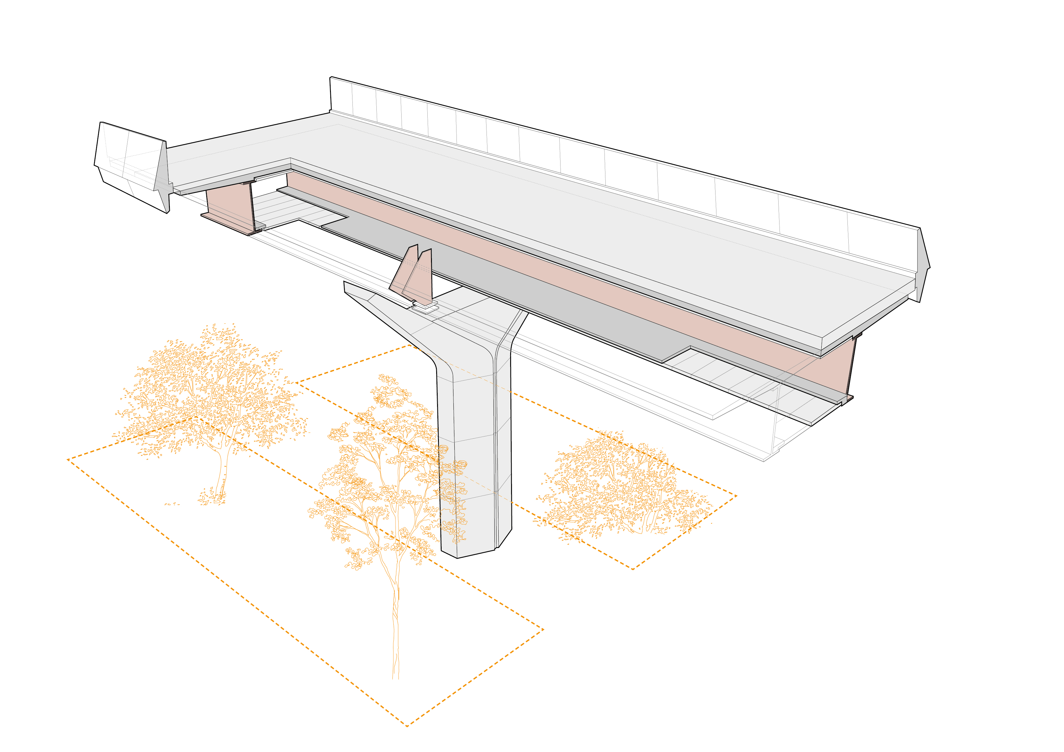 Instead of using solid pre-stressed concrete beams to form the bridge spans, the viaduct will use two steel beams sandwiched between two layers of reinforced concrete to create a lightweight and super strong hollow span.