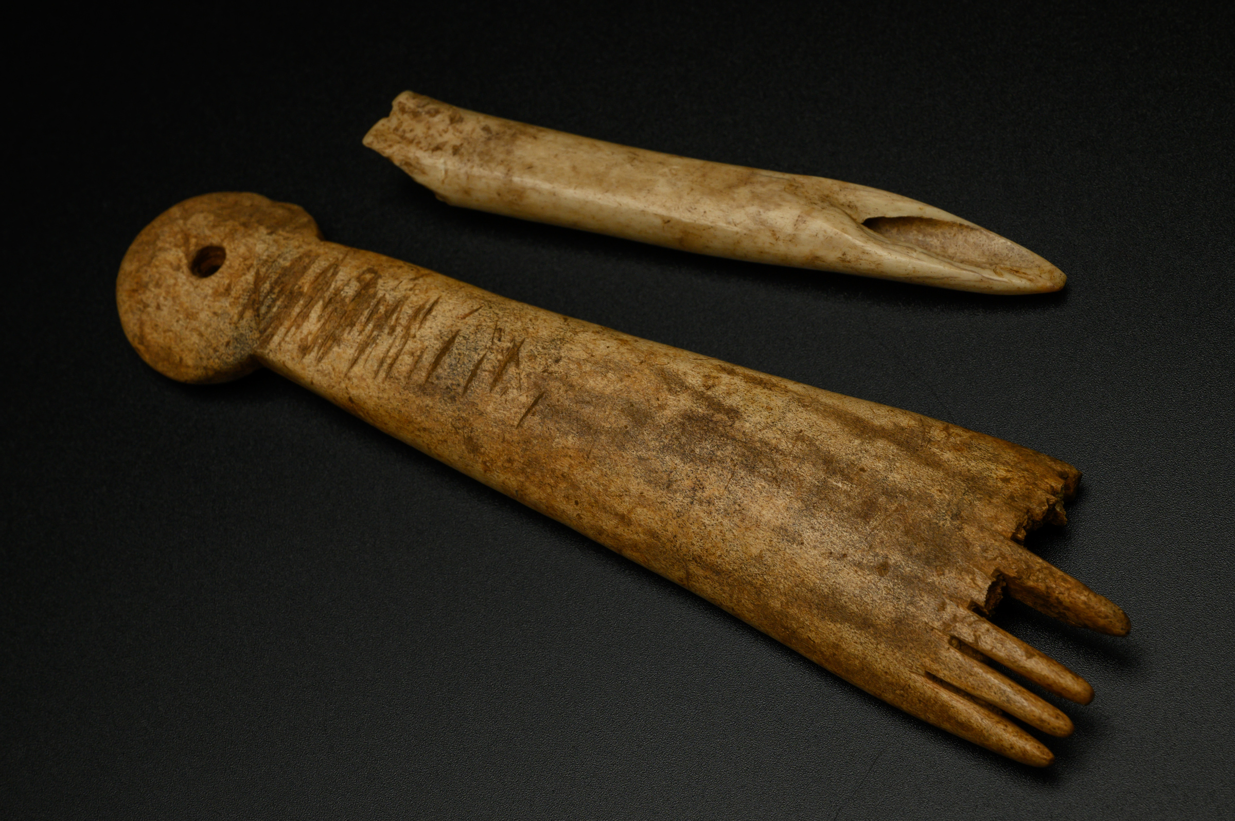 Alongside coinage, the wealth of the settlement’s inhabitants can be seen in the finds uncovered during the dig, which include glass vessels, highly decorative pottery, jewellery and even evidence of make-up. Traces of the mineral galena, lead sulphide, was found on the site – a substance that was crushed and mixed with oil as make up.