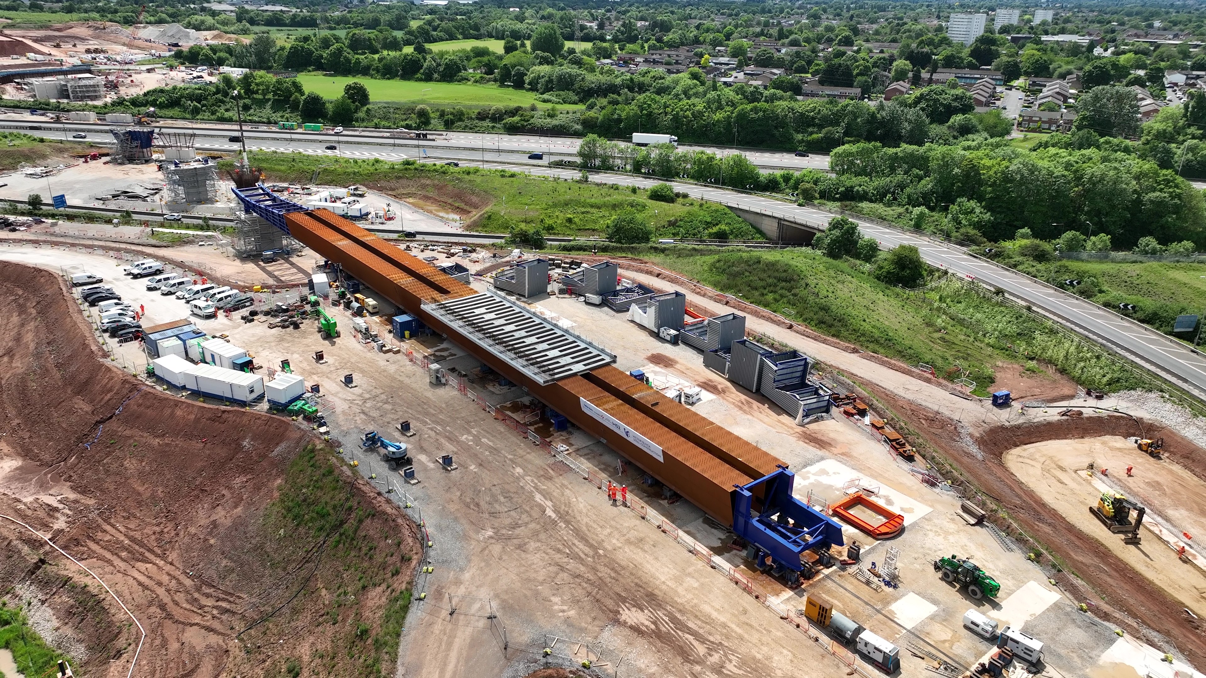 Engineers working for the HS2 project have slid the first part of a major 320-metre-long viaduct into position that will carry high speed trains across the M6 near Birmingham Airport.