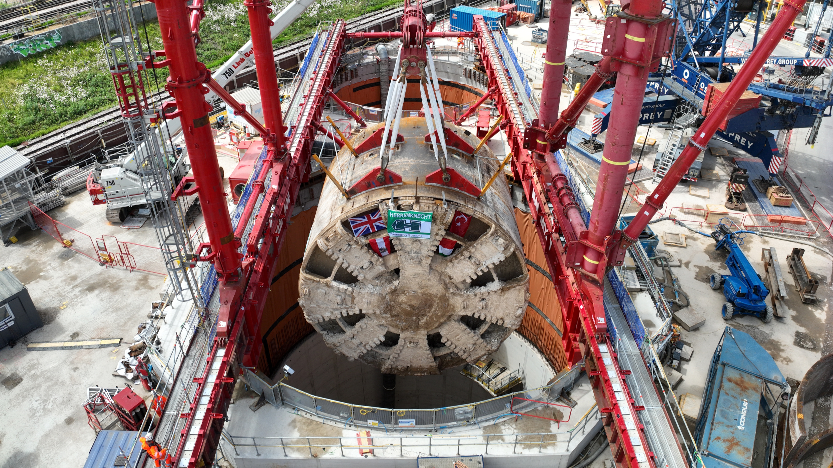 On Sunday 25th May, engineers working on the HS2 project lifted the TBM's 9.48 metre diameter cutterhead, front and middle shield, weighing 850 tonnes, using a large gantry crane. The tunnelling machine concluded its 5-mile journey from West Ruislip in April, arriving in an underground reception chamber. TBM Caroline excavated over 1.2 million tonnes of earth and installed 4,217 tunnel rings.