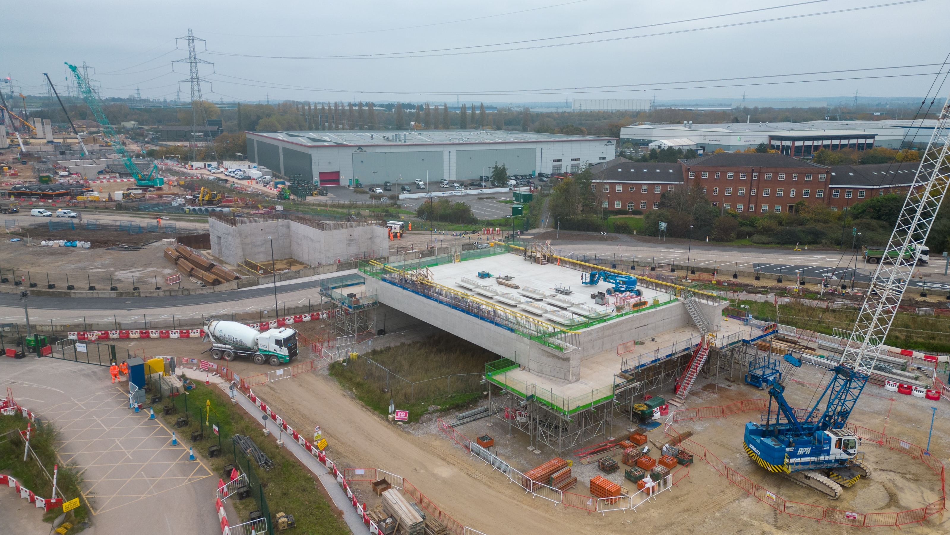Aggregate Industries are supplying concrete for the Delta Junction structures, where the scale of HS2’s construction programme is now clearly visible. A network of 13 viaducts is being built over the complex network of motorways, railway lines and rivers in the North Warwickshire area.