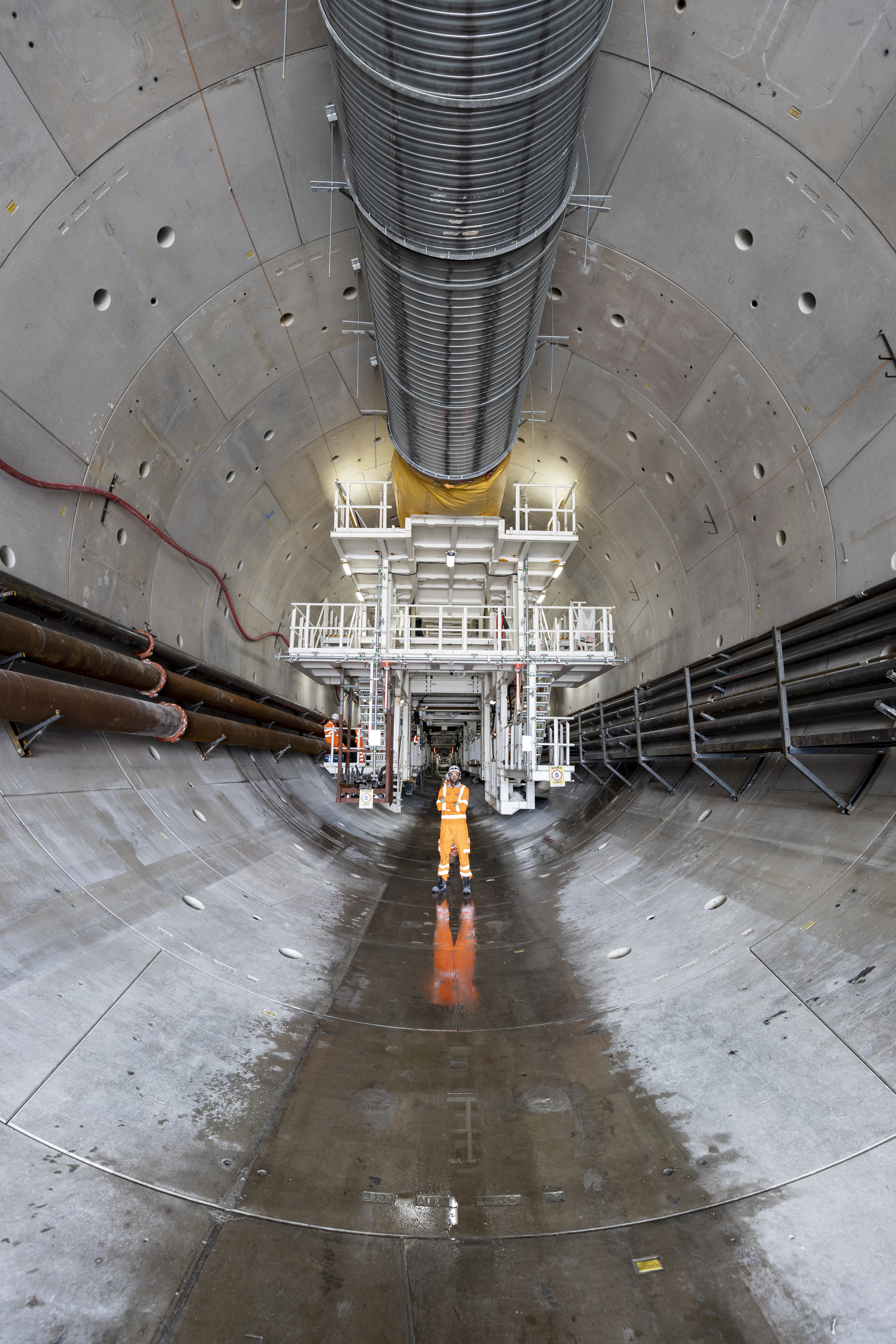 Download - Tunnel Engineer standing inside HS2's Chiltern Tunnel with tunnel boring machine Cecilia in the background, August 2021_HS2-VL-27828.jpg