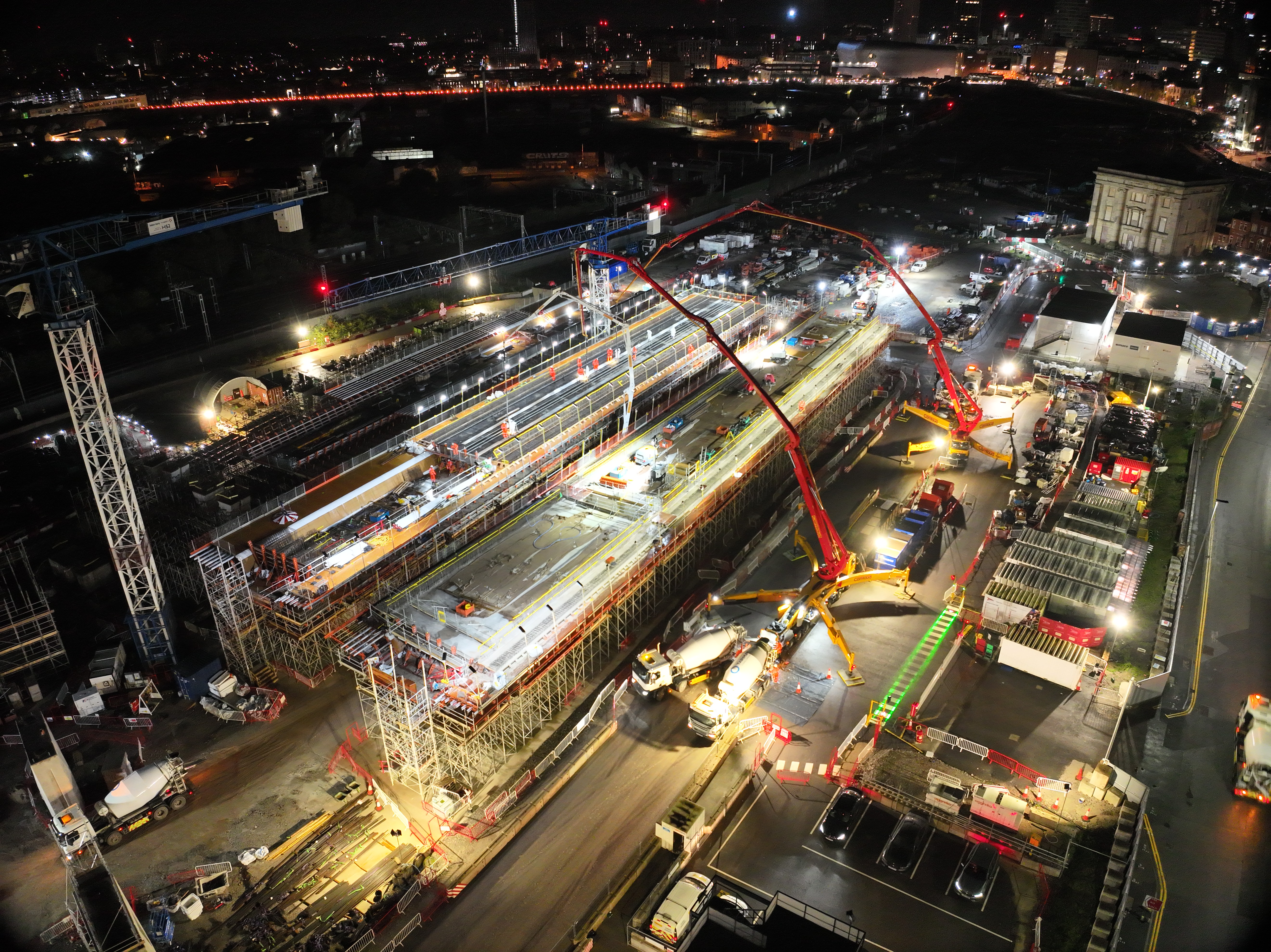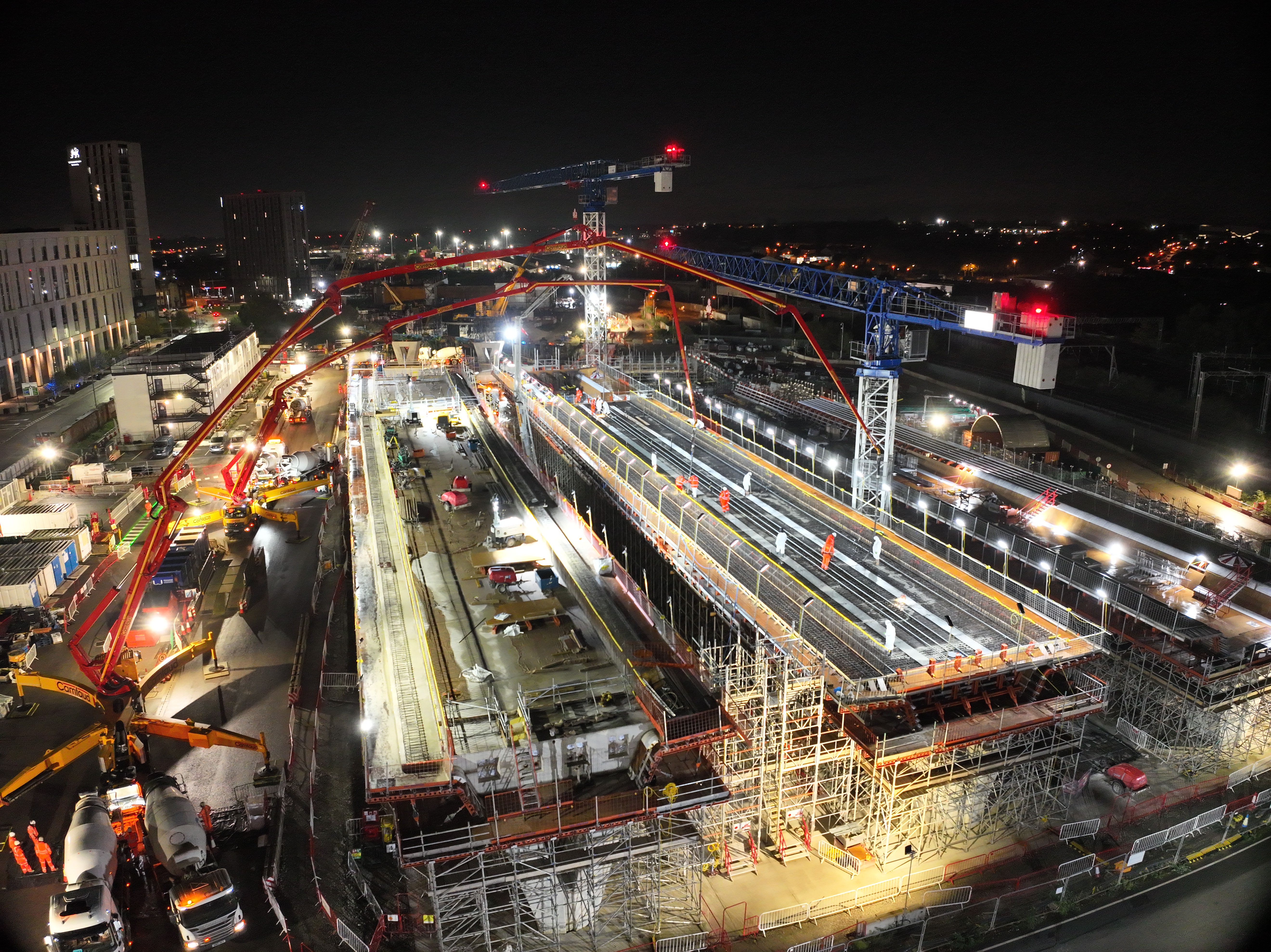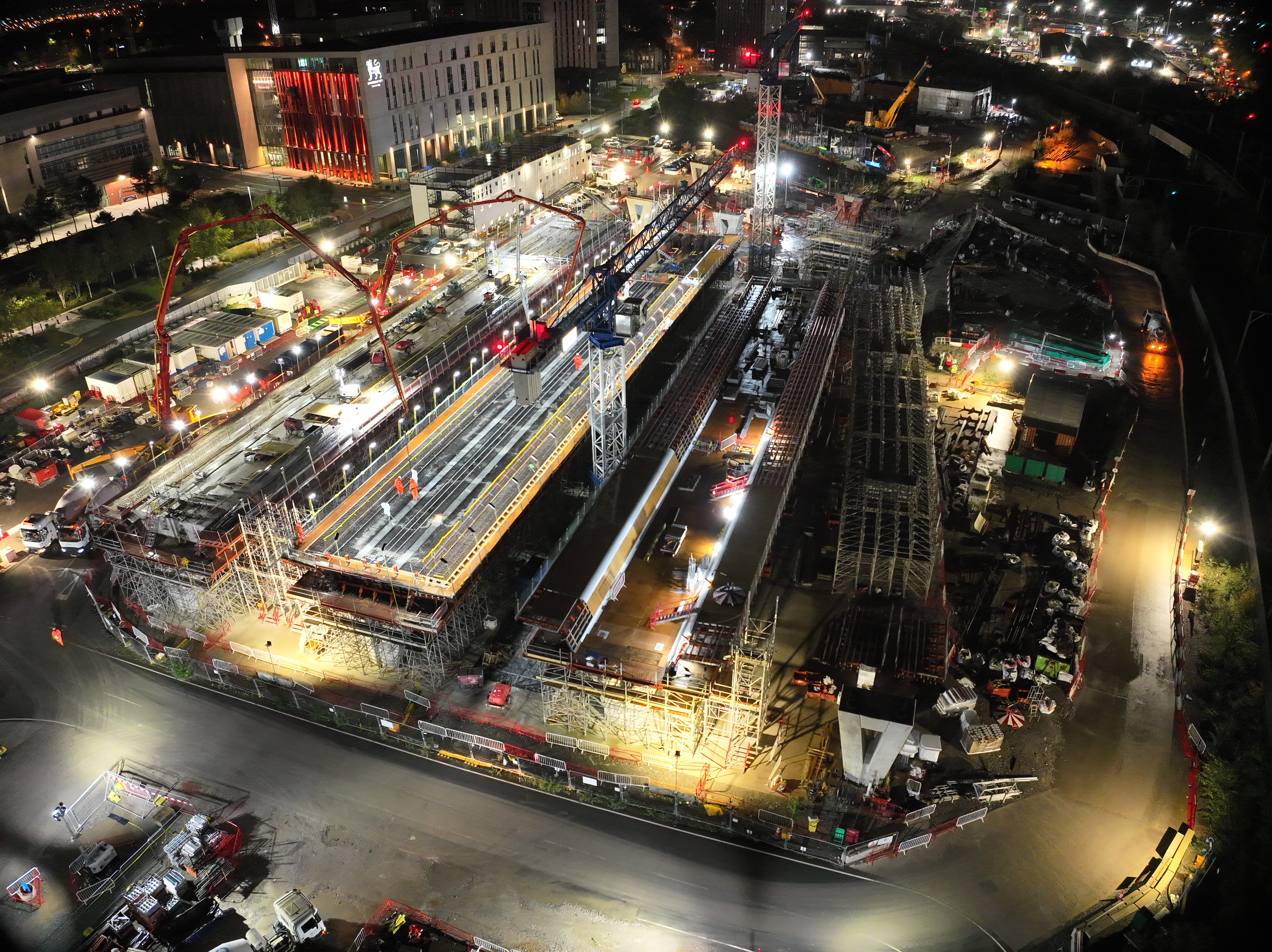 Concrete pour for Curzon 3 Viaducts deck - Millennium Point in the background