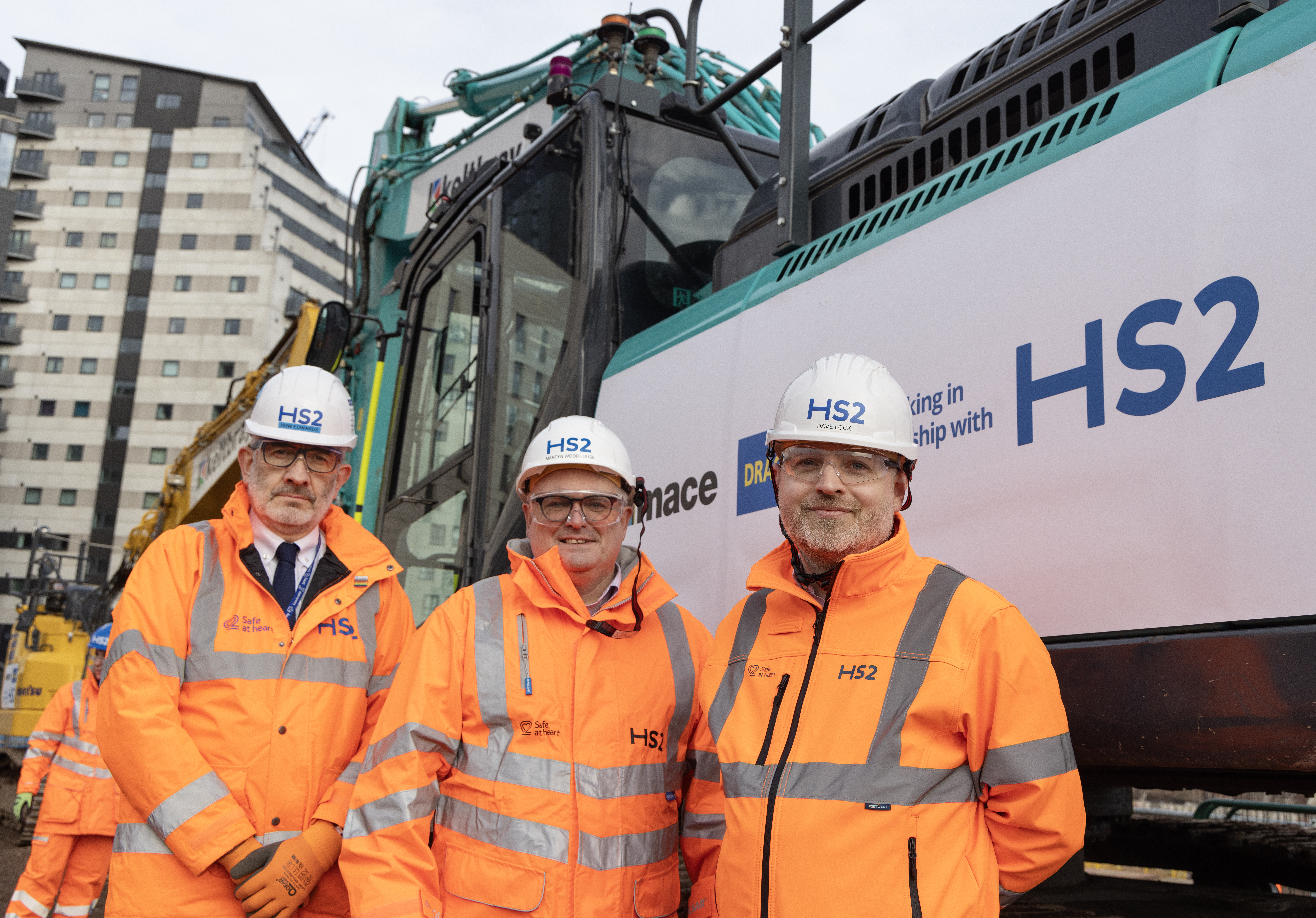 L-R Huw Edwards (HS2 Executive Director Stations), Martyn Woodhouse (MDJV Project Director), Dave Lock (HS2 Project Client)
