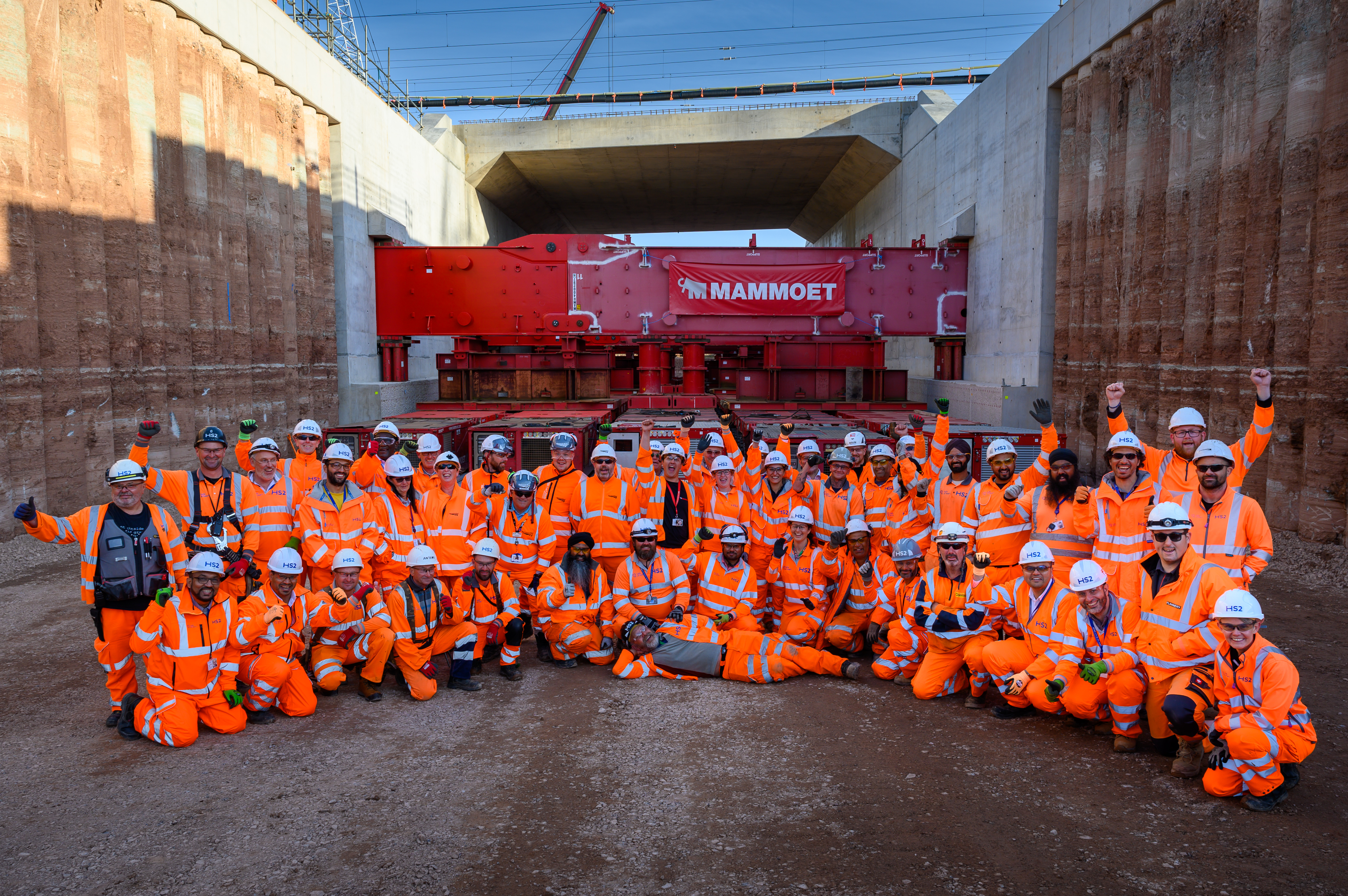 The HS2 and BBV team celebrates the UK's heaviest bridge drive