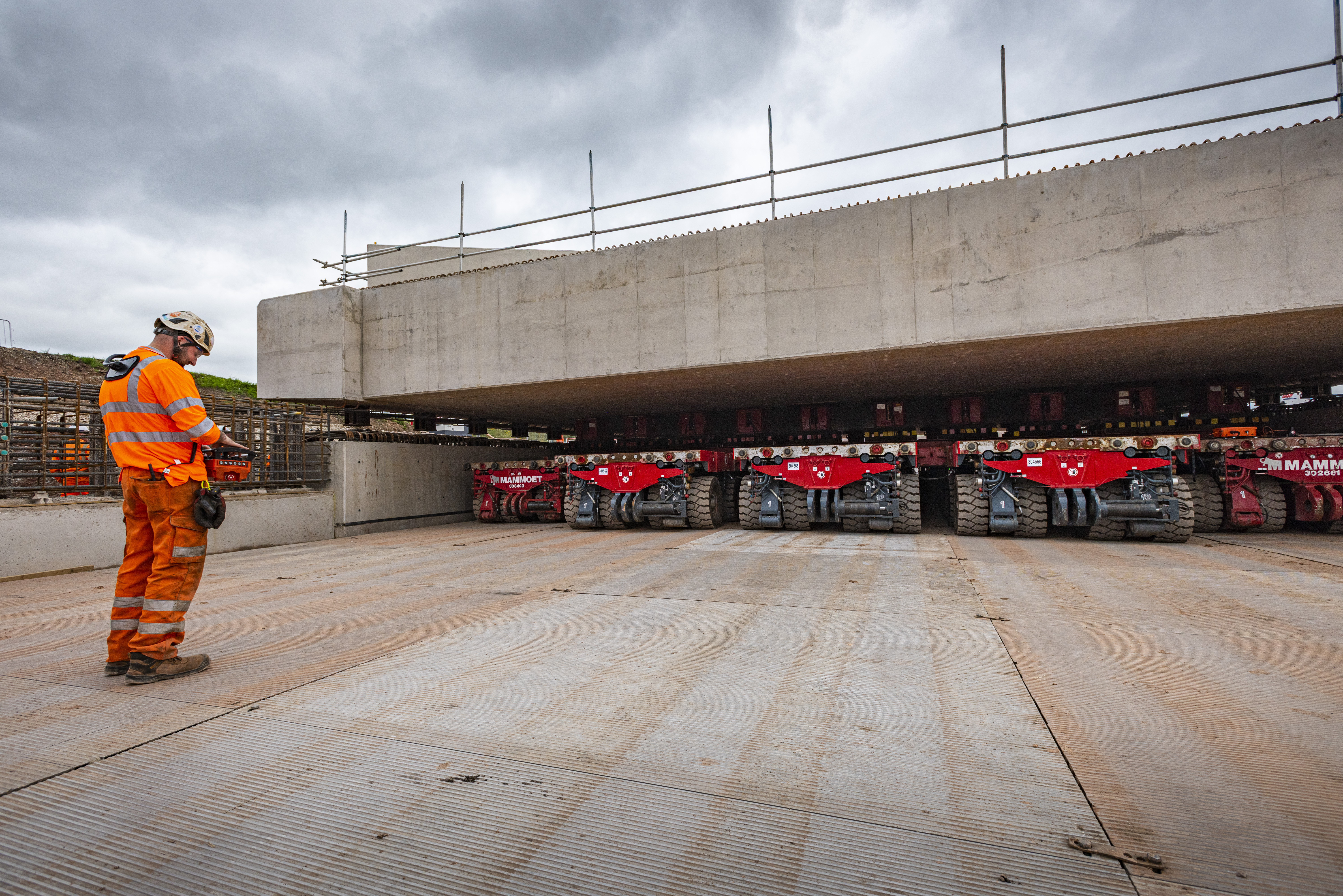 HS2's Streethay bridge being moved on 344 wheeled transporter