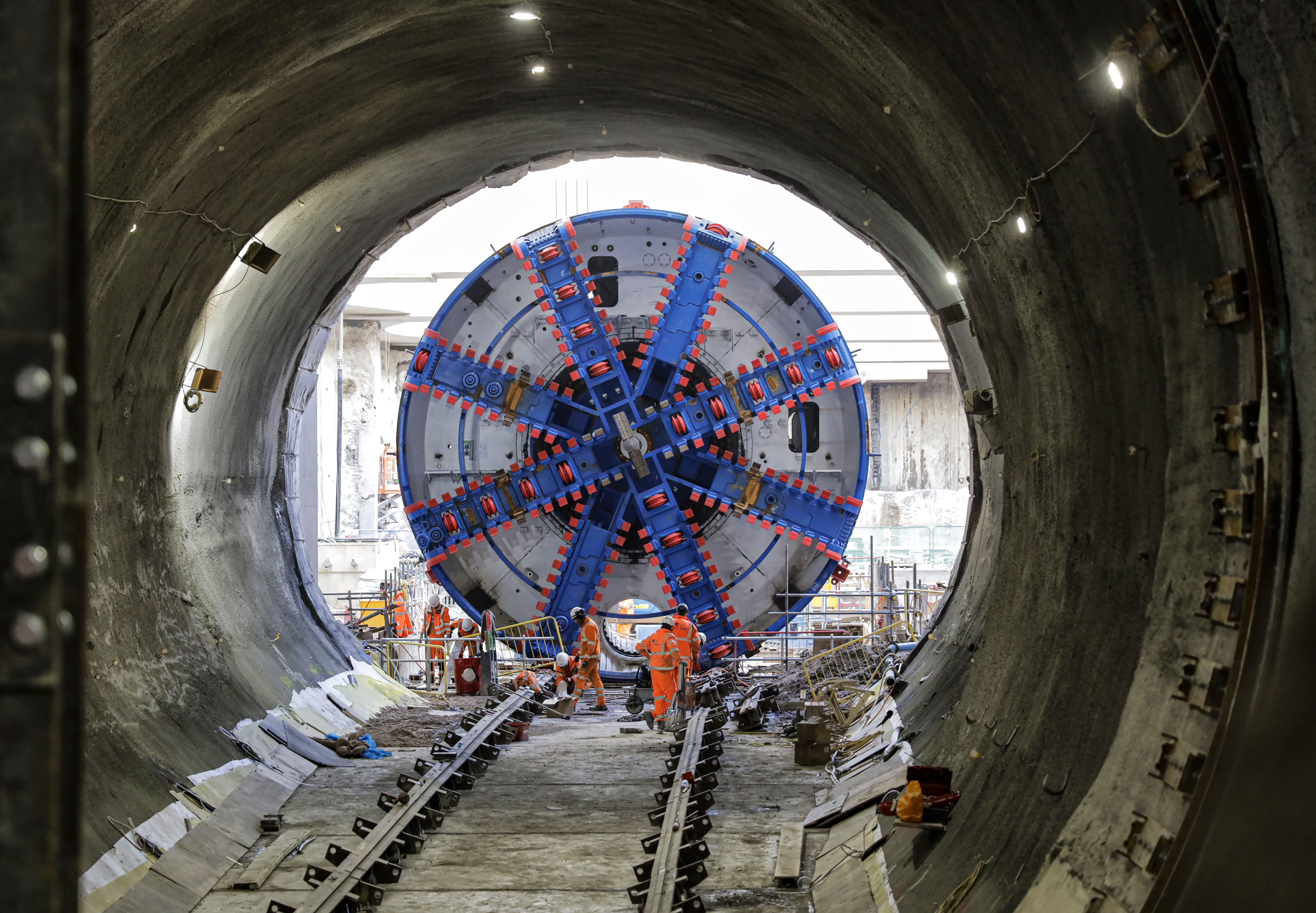 Cutterhead of TBM Anne in situ on base of Victoria Road Crossover Box