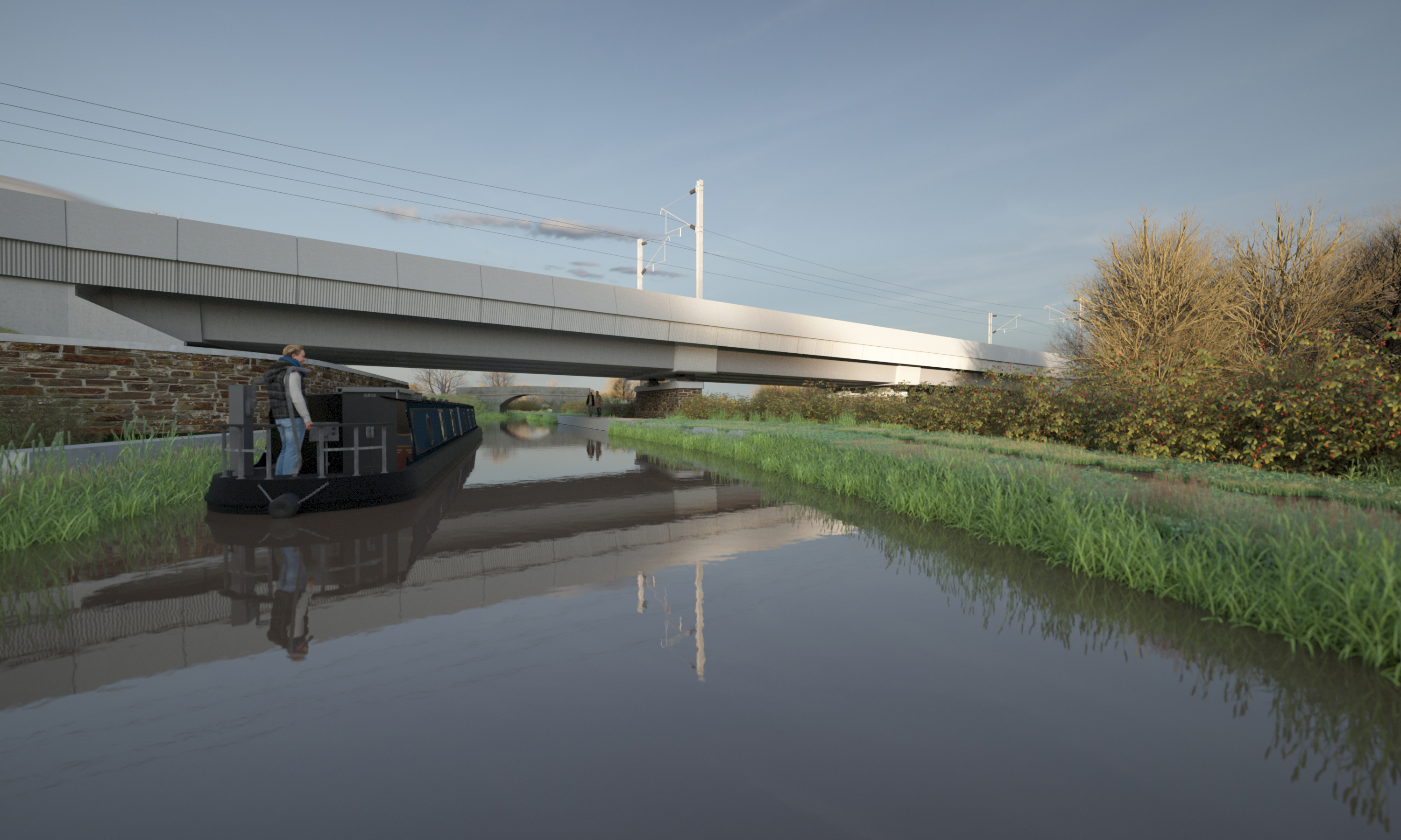 Canal boat approaching the Oxford Canal Viaduct 51371