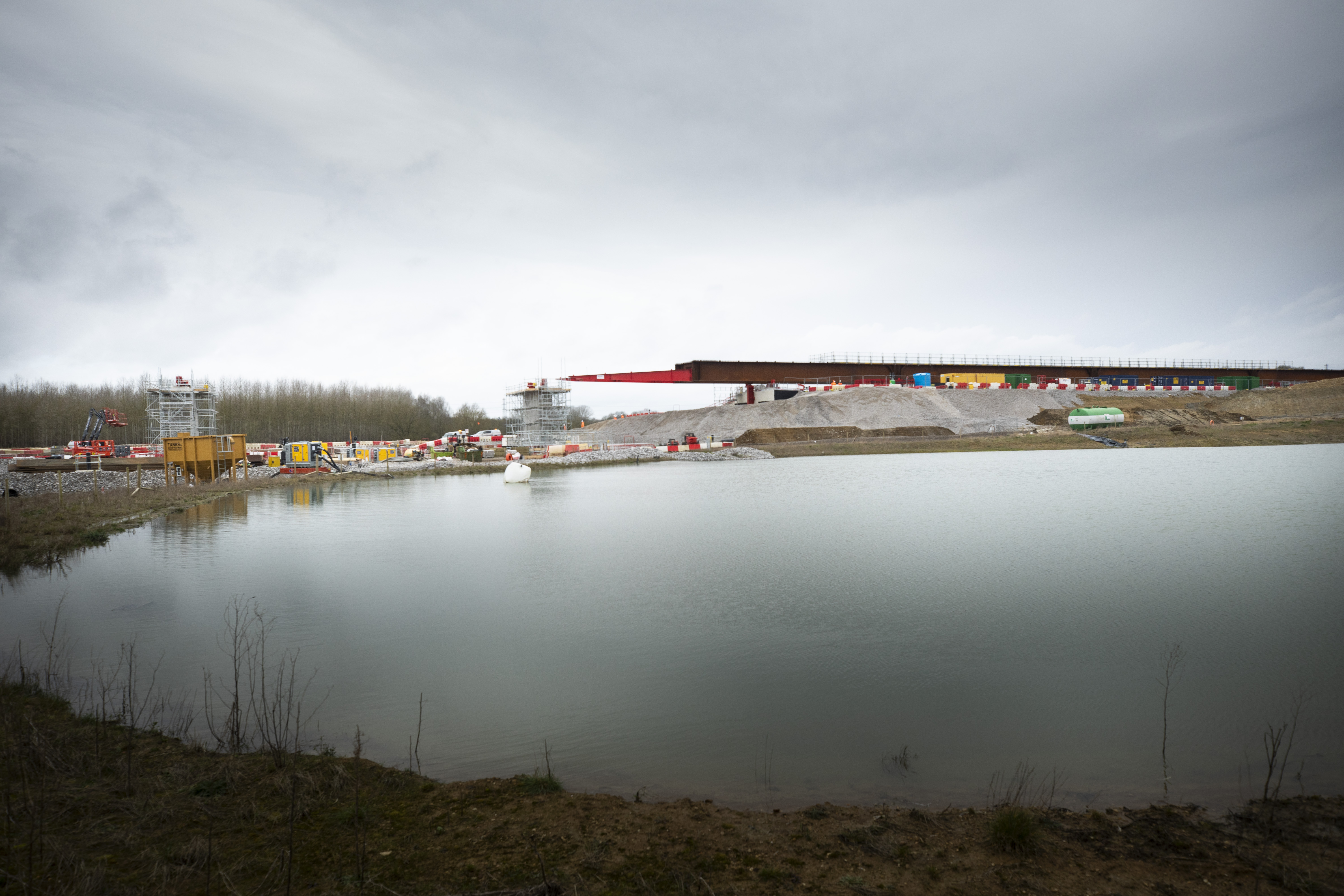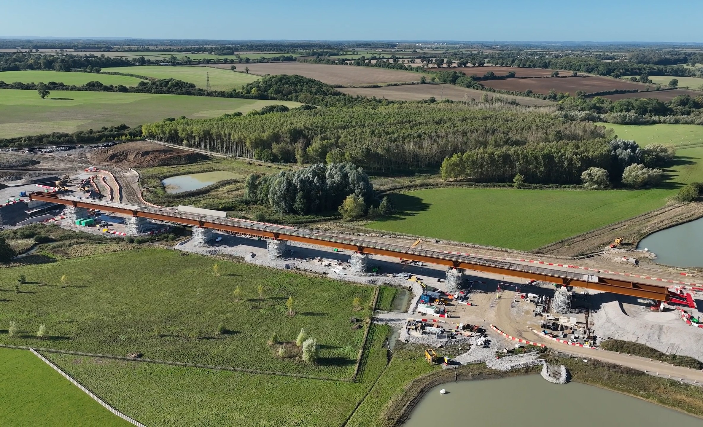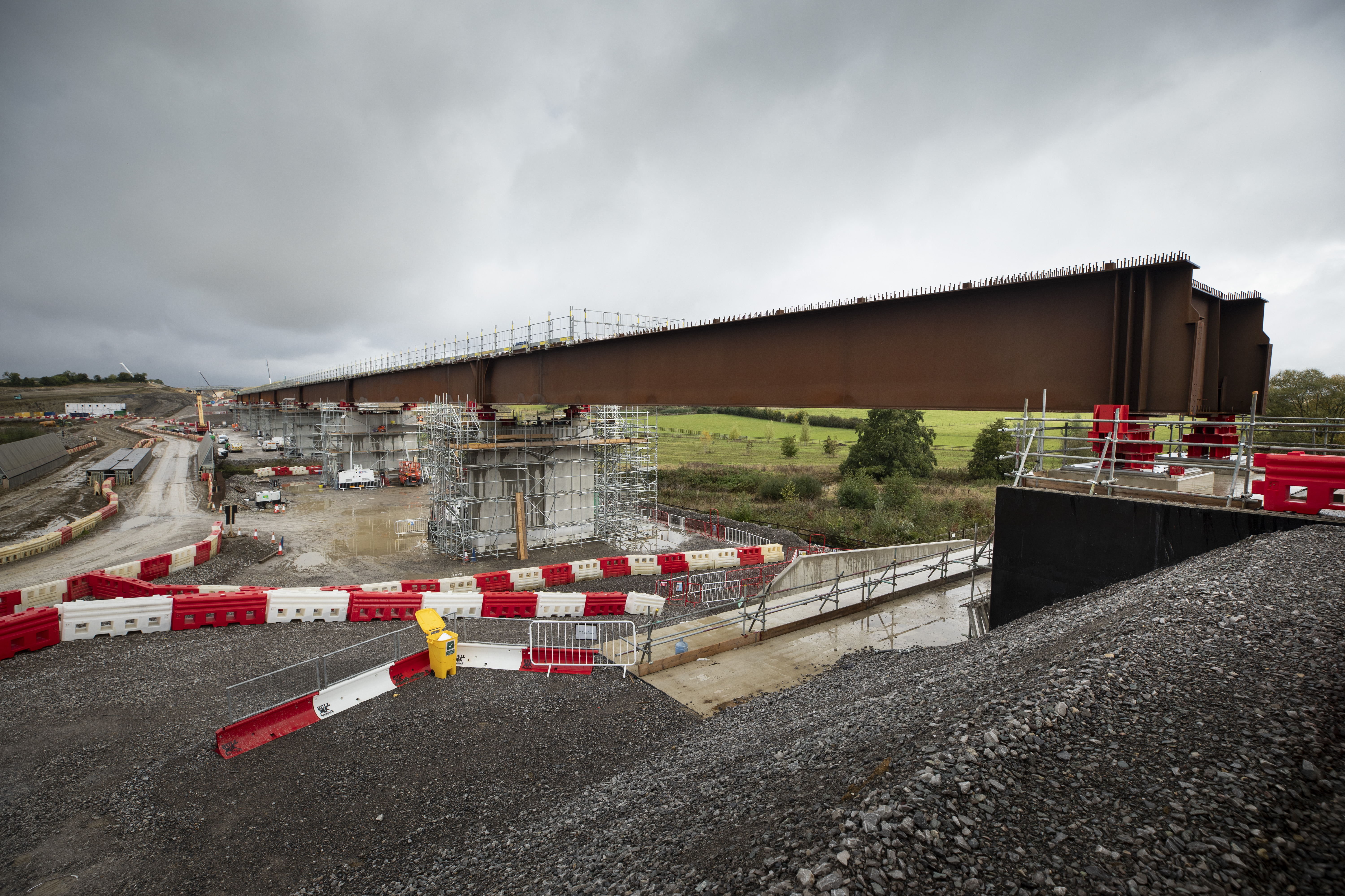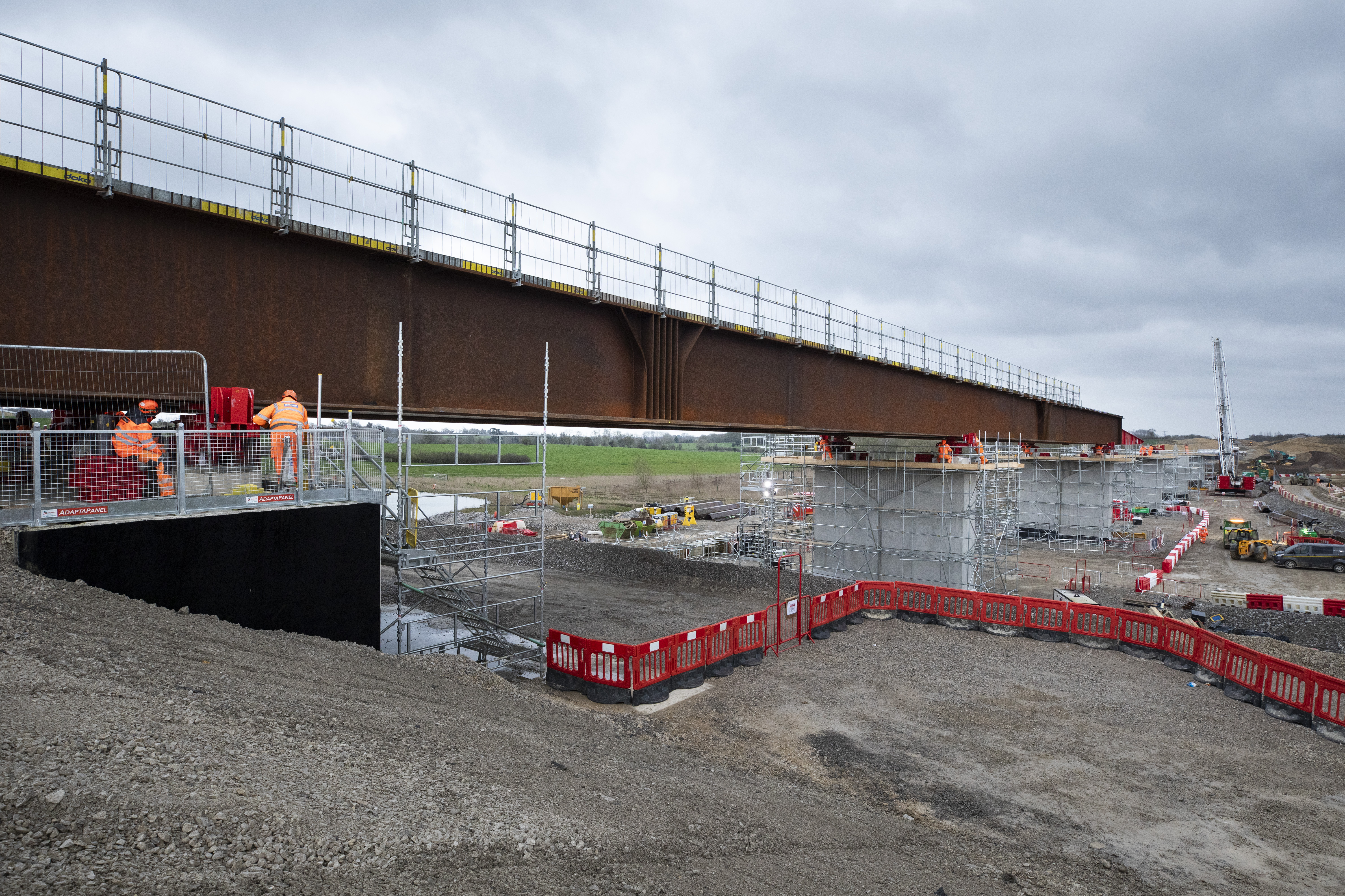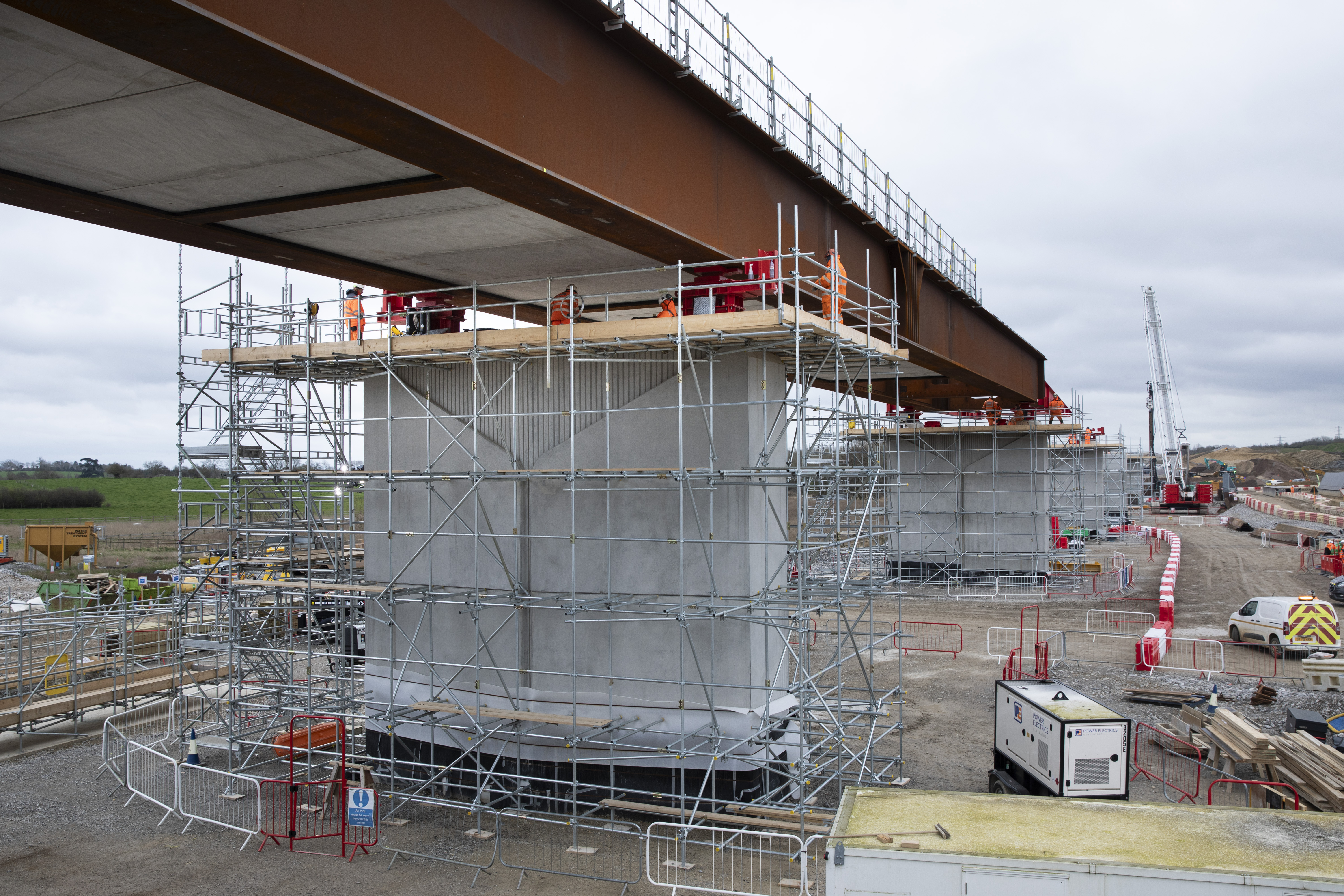Engineers at work as the front of the Westbury Viaduct deck reaches the second pier March 2024