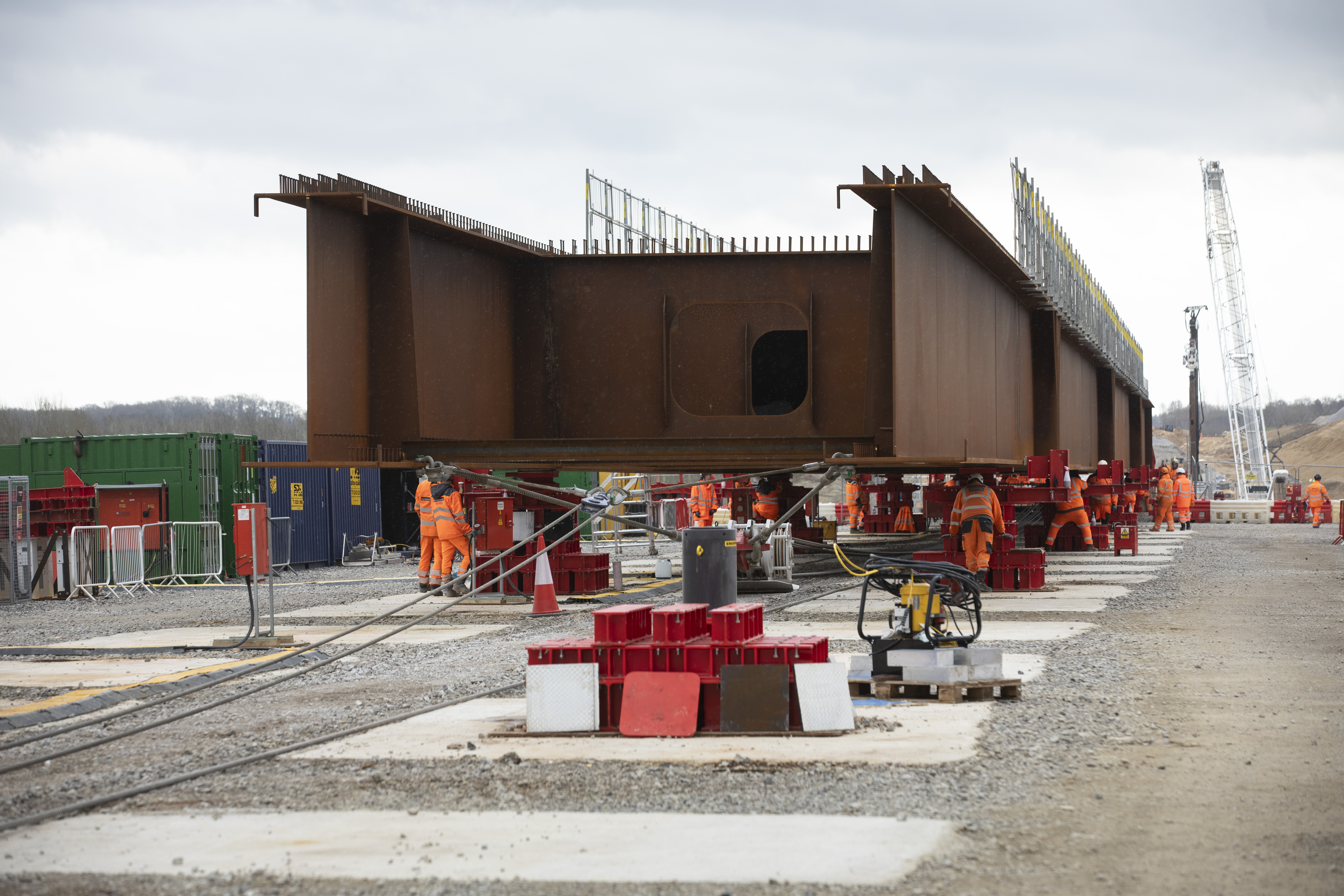 Preparing for the first slide of the Westbury Viaduct deck March 2024