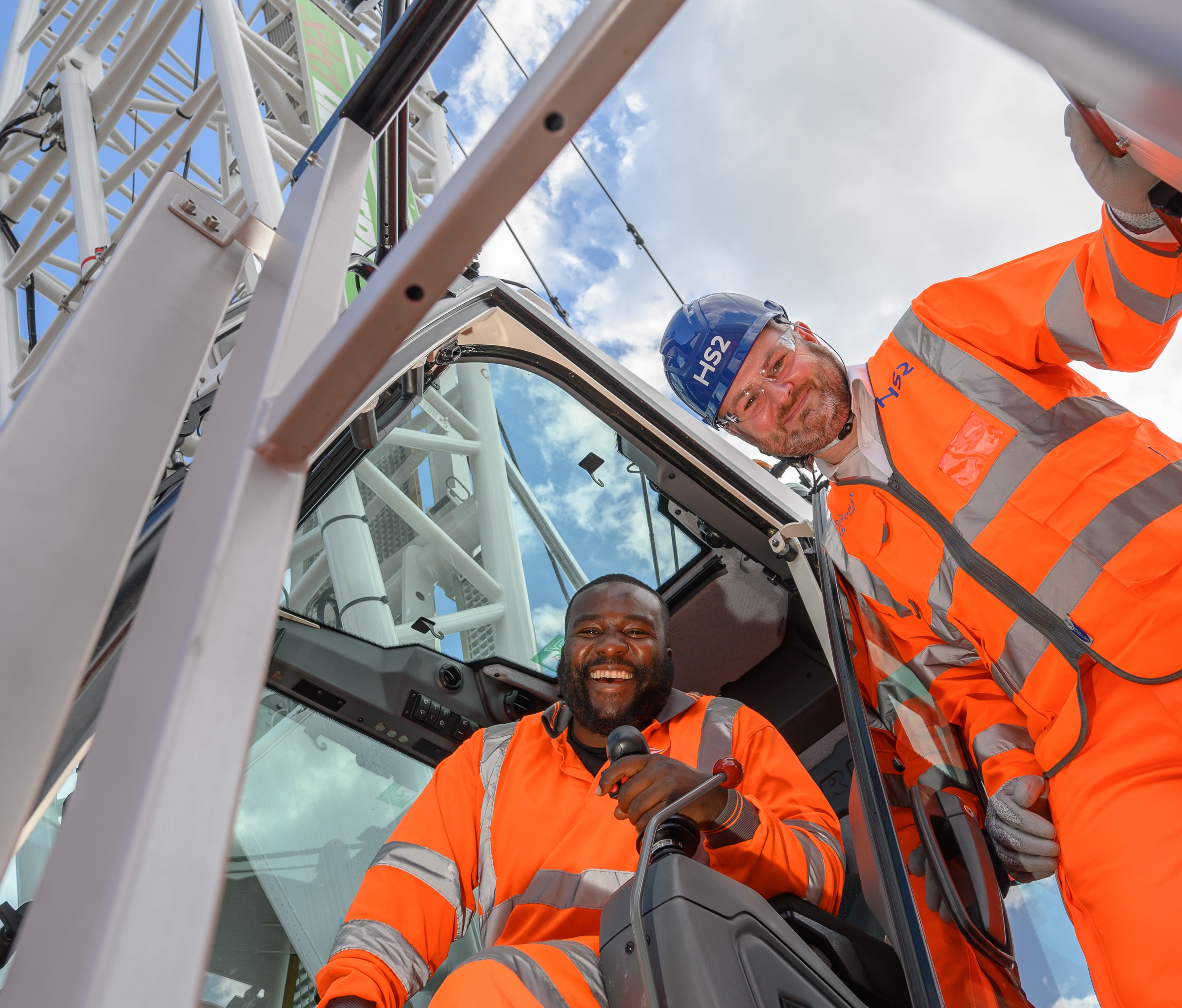 HS2 Minister Andrew Stephenson and SCS Electric Crane Operator Leon Sobers